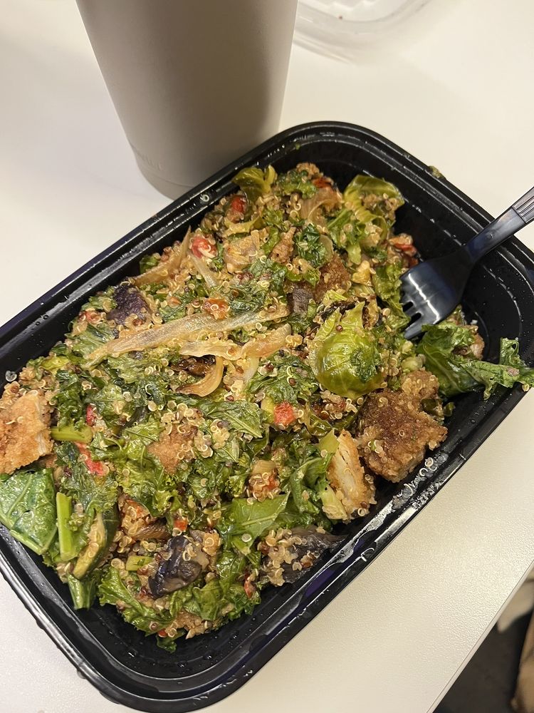 “ East peasy walk in to get a quick, healthy lunch option. Create your own quinoa or salad bowls with a variety of beverage options (low sugar iced teas and fruit drinks) and grab and go. Places to sit and eat inside or outside on a warm summer day . ”